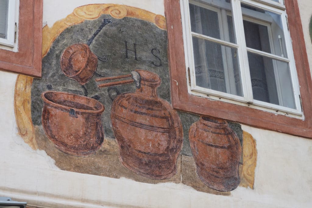 Malowane fasady domów sprawiają wrażenie, że niemalże za punkt honoru właściciele najpiękniejszych kamieniczek postawili sobie ozdobienie domów jakimś wizerunkiem. Jak łatwo się domyślić w przeważającej większości są to święte obrazy, ale ciekawą odmianą jest tu np. wieża Górnego Zamku z XIII wieku, która z daleka rzuca się w oczy. Nie chodzi tylko o to, że góruje nad miastem, ale jest również pięknie pomalowana od zewnątrz i te barwy po prostu ściągają wzrok. Ale to nie jest jedyne tak barwnie malowane miejsce.
