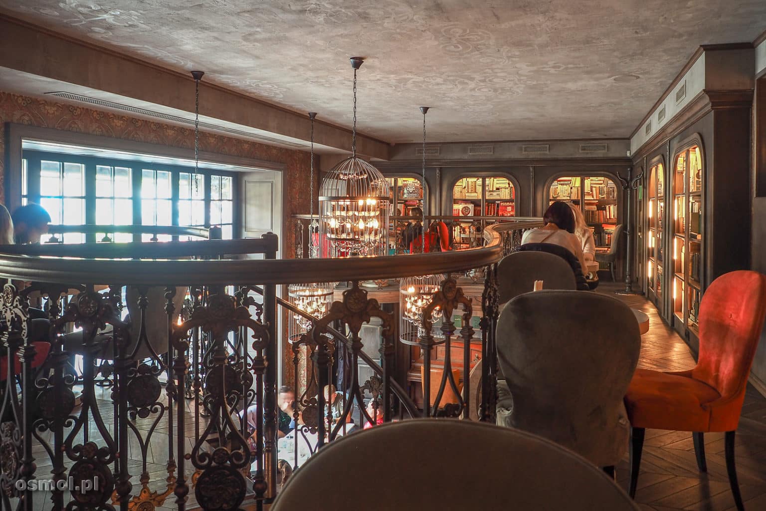 Od innych kawiarni we Lwowie Cabinet wyróżnia się tym, że wystrój jest po prostu obłędny! Nazwa zobowiązuje, bo skoro „gabinet”, to czy może być lepszy klimat niż ten z książkami na półkach? Wystrój starego, klimatycznego gabinetu, gdzie jest mnóstwo gablot, książek i ciemnego drewna. Wszystko ma tu właściwe proporcje i jest po prostu wysmakowane. W sumie mógłbym też powiedzieć, że kawiarnia to może nie gabinet lecz buduar? Jakoś tak mi się kojarzy przez żyrandole zamknięte w klatkach dla ptaków oraz przez papużki faliste, których klatka stoi tuż obok schodów. A schody to kolejny element, na który zwróćcie uwagę podczas wizyty – piękna, misterna robota z kutego żelaza. Wszystko tu jest po prostu wysmakowane, nie ma przypadkowości, elementów „z innej bajki”.