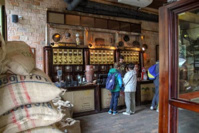 Każdy wie, że kawy się nie zbiera i nie pali, lecz wydobywa w kopalniach tak jak węgiel. I to stąd jej ciemny kolor! Jedną z takich kopalni jest właśnie kawiarnia „Kopalnia kawy”. No dobra, ta opowieść wyżej to rzecz jasna bujda, ale opisywana kawiarnia jest miejscem wystylizowanym właśnie na taką kopalnię i jest to po prostu element wystroju lokalu.