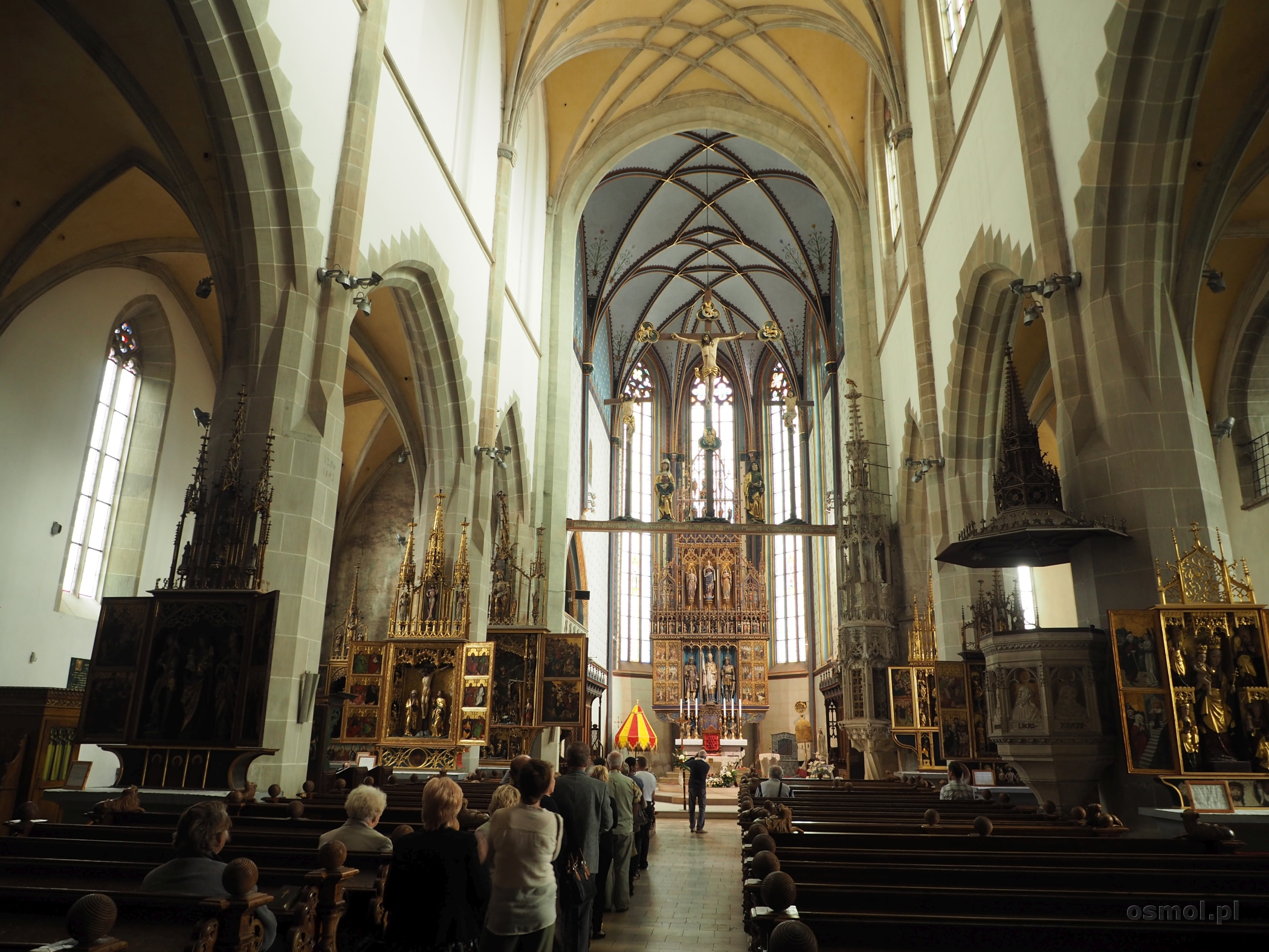 A szkoda, bo wierzcie mi, że świątynia jest piękna i jeśli lubicie drewniane rzeźby, piękne średniowieczne ołtarze, to będziecie we właściwym miejscu. Lubię klimat historii, jaki unosi się w kilkusetletnich budynkach. Ponieważ jednak, sam nie lubię, jak ktoś mi wsadza obiektyw w twarz i robi zdjęcia, także i ja nie robiłem tego względem tych, dla których kościół jest sacrum a nie profanum jak dla mnie. Posiedziałem, poprzyglądałem się, pokontemplowałem i wyszedłem. Lekko rozczarowany, bo może i nie cała świątynia była do zwiedzania, to jednak opłata za wstęp była brana w całości.