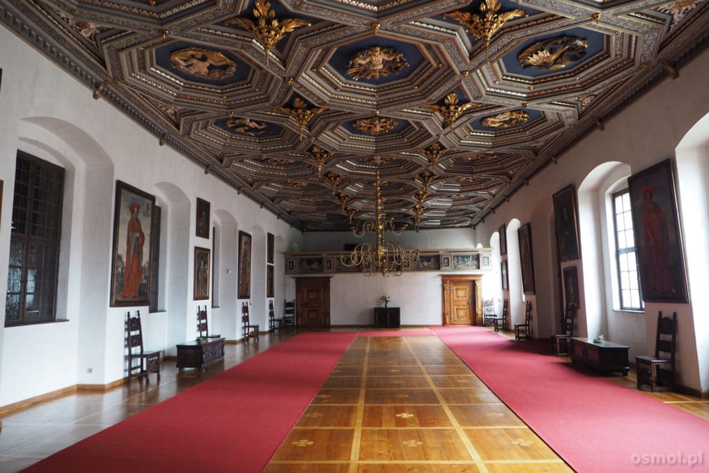 Na sufitach będą pięknie rzeźbione kasetony, ściany zasłonią nie tylko stare obrazy, z których spojrzy na nas wielu dawnych mieszkańców zamku, ale będą też wisiały gobeliny. Chociaż i tak mnie najbardziej zapadła w pamięć sala, w której wystawione były skóry i trofea ze zwierząt z afryki. W kącie stały ogromne ciosy słoni, które muszą być warte majątek, był nosorożec (z dzisiejszej perspektywy zabijanie gatunku na wymarciu, to zbrodnia) I pozostaje tylko żałować, że w tej sali nie można spędzić więcej czasu i że nie ma się jej tylko dla siebie. Niestety zwiedzanie w grupie nie jest tym, co lubię najbardziej.