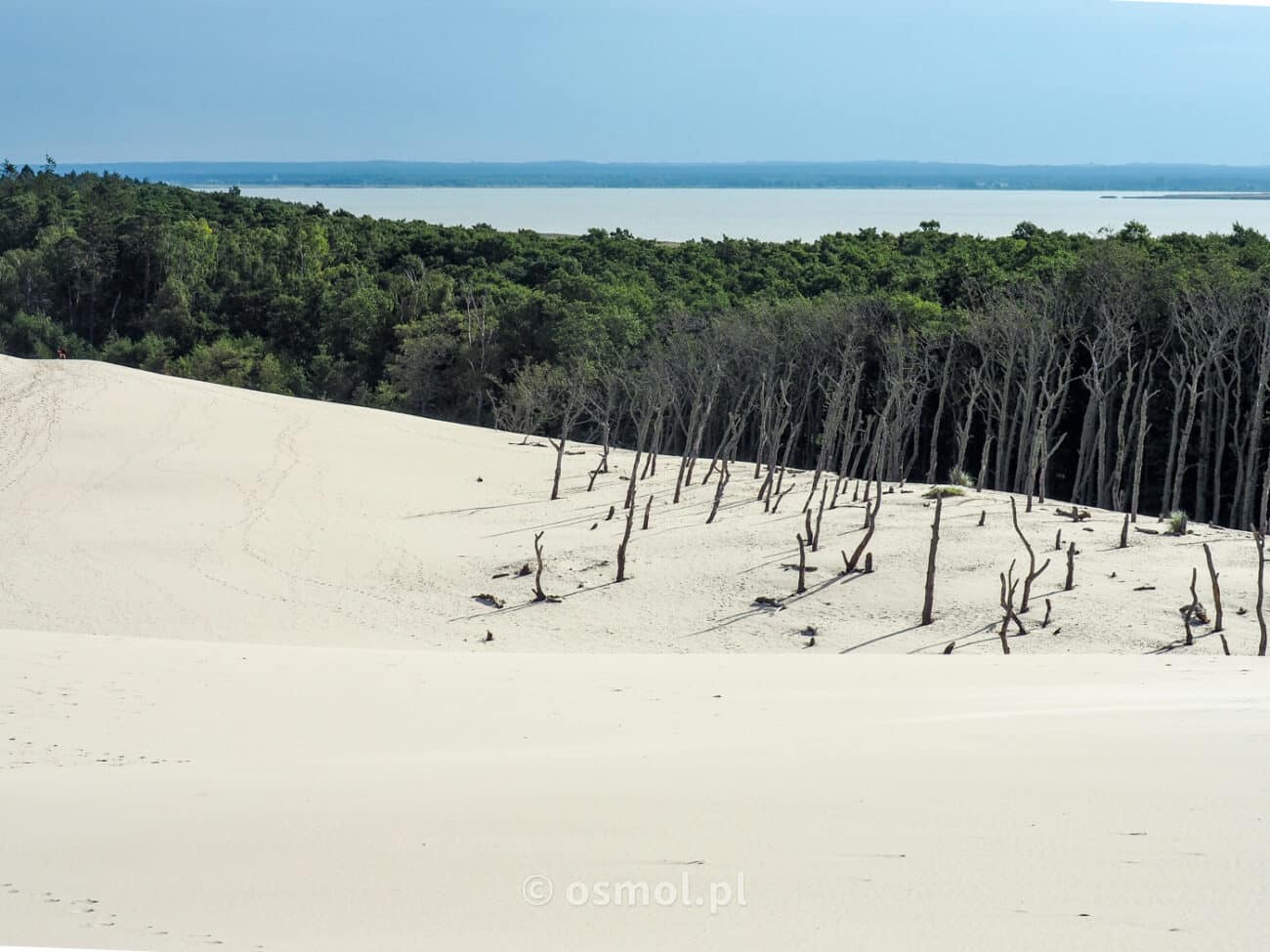 Z tego powodu miałem dość czasu, by stojąc na jej szczycie, podziwiać okolicę. A jest na co patrzeć, bo z jednej strony w oddali majaczy morze, a z drugiej jezioro Łebsko. Wydma położona jest mniej więcej w połowie jego długości.